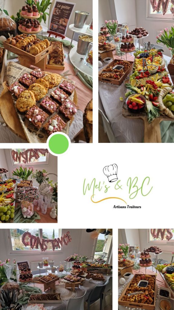 Citronnade, smoothie de jus de fruits frais, mini cupcake Nutella, gaufre, pancake, assortiment de fruits frais de saison, sucette de Chamallows, mini brownie, pop corn, bonbons, marbré, cookie aux trois chocolats etc….